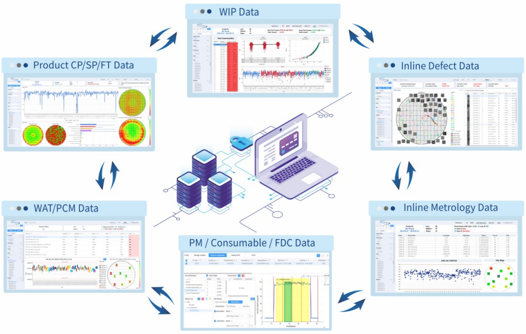 系统通过特有的算法支持和合理的数据处理流程,能够快速完成底层数据清洗、连接、整合工作,为Fab和 Fabless企业提供数据管理、良率分析、低良率成因下钻分析等方案。